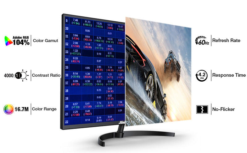 • [Smooth Image without Stuck] With a 60Hz high refresh rate and 4.2ms (GTG) quick response time, the Jlink gaming monitor provides a fluid picture by eliminating screen ghosting, blurring, and periodical flickering. Compatibility with FreeSync technology reduces tearing & stuttering while transitioning pixels and guarantees the smoothness of the image even under high-speed motion pictures.