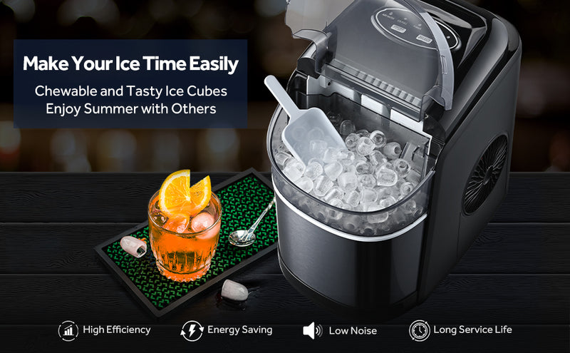 • Ultra Quiet & Durable: This ice maker operates at a decibel level of less than 45dB, allowing you to enjoy ice making in a comfortable and quiet environment all the time; Equipped with a quiet cooling fan, quickly dissipate heat to the compressor for long-term use.